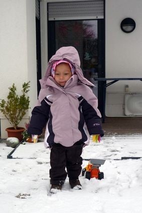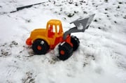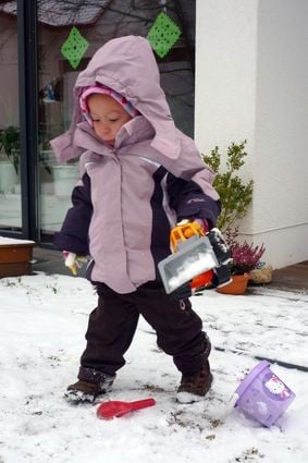 Gut gelaunt und voller Tatendrang schnappte sie sich ihren Bagger und ging Schnee schaufeln. Was für eine Schneemaus!