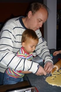 Aber auch Tina unternahm erste Ausstechversuche. Gemeinsam mit Papa stach Tina Sterne, Herzen und Monde aus.