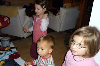Drei kleine Bäckerinnen standen vor Tinas Spielküche und machten schon einmal Trockenübungen für das Plätzchen backen.
