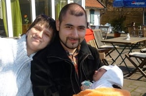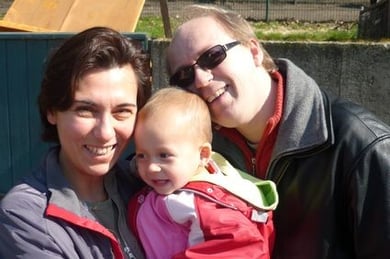 Dann wird auch kurz für ein Erinnerungsfoto mit Papa und Mama posiert. Nicht zu vergessen sind Onkel Christian und Tante Kathrin, die mit ihrem schlafenden Baby mitkamen.