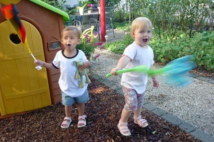 Dort hüpften beide Mädchen in ihren schönen WM-Trikots durch die Wohnung und feuerten die deutsche Mannschaft lauthals an.