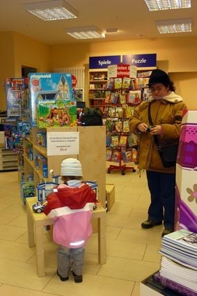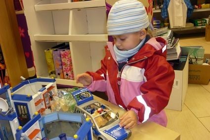 Beim Shopping legte Tina allerdings selbst Hand an und bespielte höchst konzentriert eine Playmobil Polizeistation.