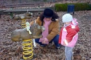 Die ersten warmen Sonnenstrahlen lockten unsere Lausemaus vor die Haustür. Tina schnappte sich ihre Oma Teresa und eröffnete mit ihr die Spielplatzsaison 2010.