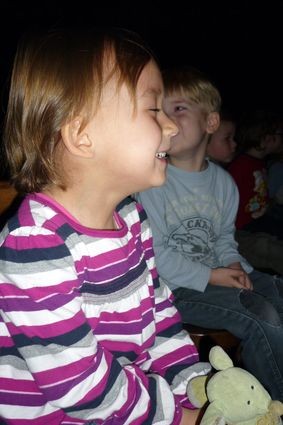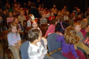 Ungeduldig und voller Vorfreude stürmten die Kindergartenkinder den Theater-Raum und namen in Windeseile ihre Plätze ein.