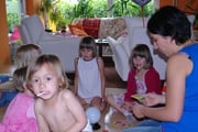 Am späten Nachmittag wurde das Spielen nach innen verlegt und Tinas neue "Bibi Blocksberg Hexenkugel" kam zum Einsatz: lautes fröhliches Mädchengequietsche war in der ganzen Straße zu hören.