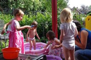 Bei sommerlichen Temperaturen wurde anschließend der neue rosa Swimmingpool eingeweiht und ausgelassen draussen getobt.