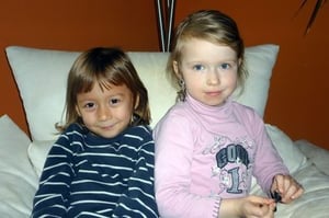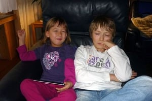 Zum Mittagessen bei Oma und Opa neckte sie ihren Cousin Robin und grinste schelmisch bis über beide Ohren.
