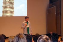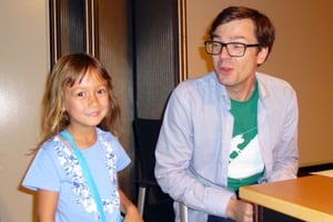 Das konnte Tina sich nicht entgehen lassen. Sie begrüßte ihn sogar persönlich kurz vor seinem Vortrag "1, 2, 3, 5, 8 - Zählen wie Leonardo von Pisa".