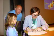 Stolz zeigte sie Ralph Caspers ihr Ergebnis und holte sich das heiß begehrte Autoramm von ihm ab.
