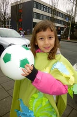 Aber nicht bei Tina! Die schaffte es sogar, ZWEI Fußbälle einzufangen und zog danach freudestrahlend mit dem Karnevalsumzug weiter.