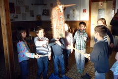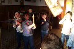 Da prügelten die Kleinen drauf los, bis das Teil von der Decke fiel, aufplatzte und jede Menge Süßigkeiten zum Vorschein kamen.