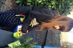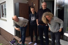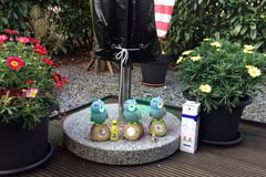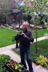 Danach fuhren wir zum Osteressen zu Oma und Opa. Auch dort war der Osterhase Tina schon zuvor gekommen. Während Tina den großen Garten ausführlich inspizierte und leckere Ostersüßigkeiten zu Tage förderte, machte der Opa Erinnerungsfotos. Der Rest der Familie übte sich darin, Tina von der Terrasse aus kluge Ratschläge zu geben, wo noch etwas versteckt sein könnte. So hatte ein jeder seinen Spaß!