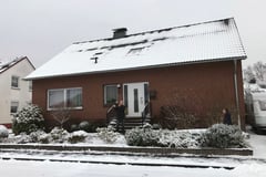 Bei Oma und Opa angekommen stellte Tina fest, dass dort noch mehr Schnee lag als Zuhause. Da hatte Opa Wolfgang die Idee, zusammen einen Schneemann zu bauen.