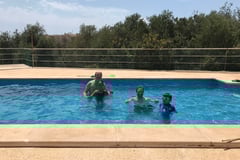 Unser Pool wurde natürlich, wie immer, mehrmals am Tag genutzt, um zu schwimmen, springen, tauchen, spielen, scherzen, erfrischen oder einfach nur, um gemeinsam Spaß zu haben darin.