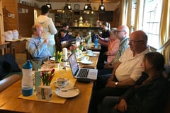 Zur Vesper-Zeit kam dann natürlich das Notebook vom Tisch, damit Tina mehr Platz für den leckeren Kuchen hatte. Damit klang die Feier auch schon aus und alle machten sich auf den Heimweg. Am weitesten hatte es Tina mit ihren Eltern, die dann auch noch eine Vollsperrung der Autobahn und mehrere starke Wolkenbrüche zu umfahren hatten.