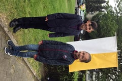 Sowohl beim Einzug in die Kirche als auch beim Auszug nach dem feierlichen Gottesdienst konnten wir Dominik zujubeln. Wie stolz und schick er doch aussah!