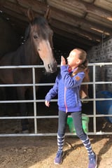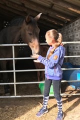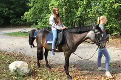 Während des großen Reitturniers bestaunte Tina nicht nur die Wettkampf-Teilnehmer, sondern wagte sich selbst auf's Pferd.