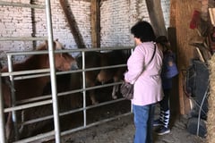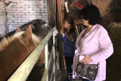 Oma Teresa bekam eine exklusive Reiterhof-Führung und durfte alle Ponys kennenlernen. Auch das Geben von Leckerlies wurde erfolgreich geübt.