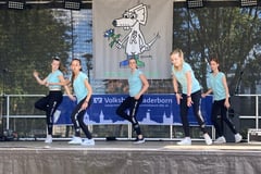 Während die Tanzschulbesitzerin Tinas Gruppe ansagte, nahmen alle fünf Tänzerinnen ihre Plätze ein und fetzten dann nur so los.